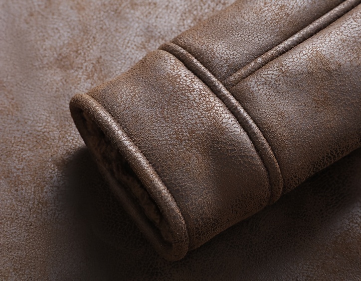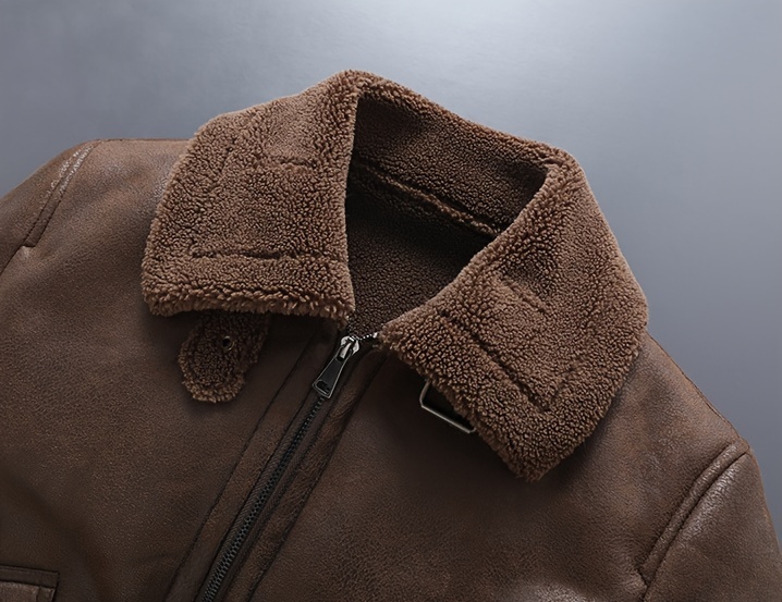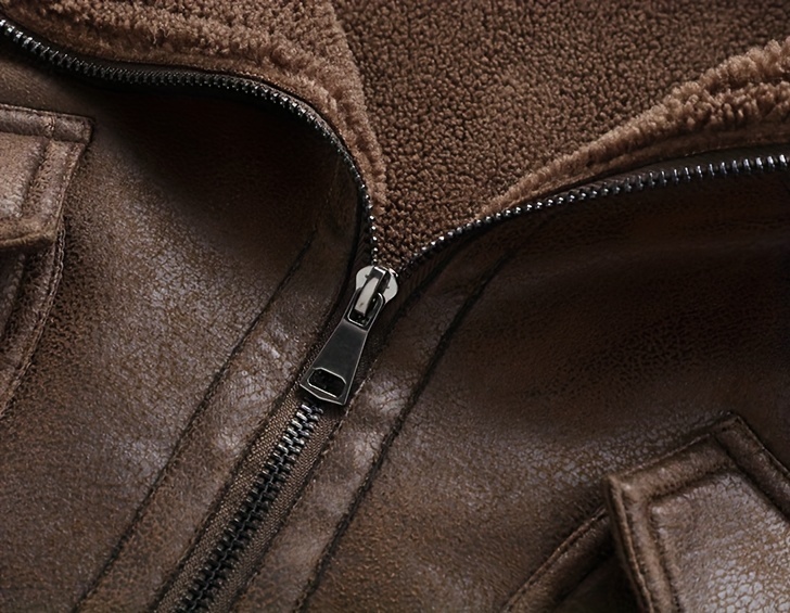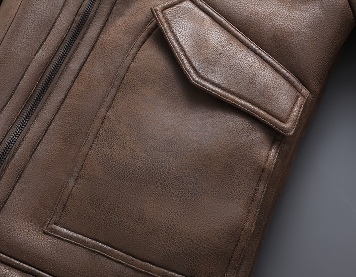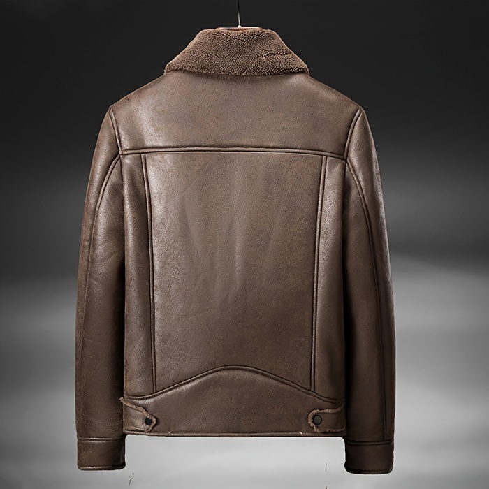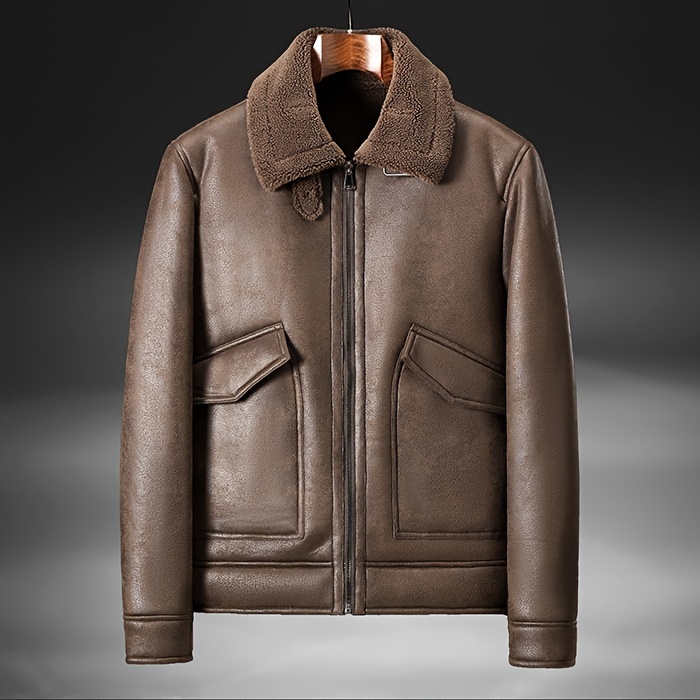 Men's Fleece-Lined Faux Leather Jacket - Casual, Zip-Up with Lapel Collar & Pockets for Winter Warmth